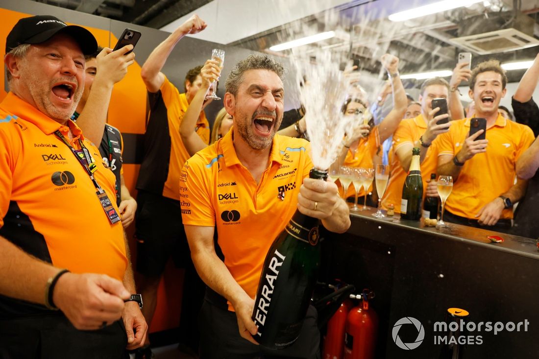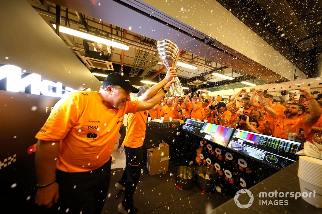 Andrea Stella, Diretor de Equipa da McLaren F1 Team, a equipa McLaren celebra a conquista do título de Construtores