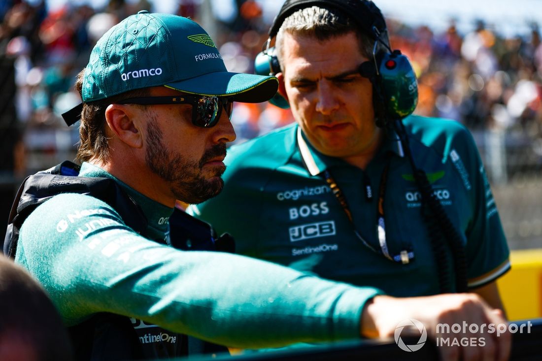 Fernando Alonso, Aston Martin F1 Team, na grelha de partida