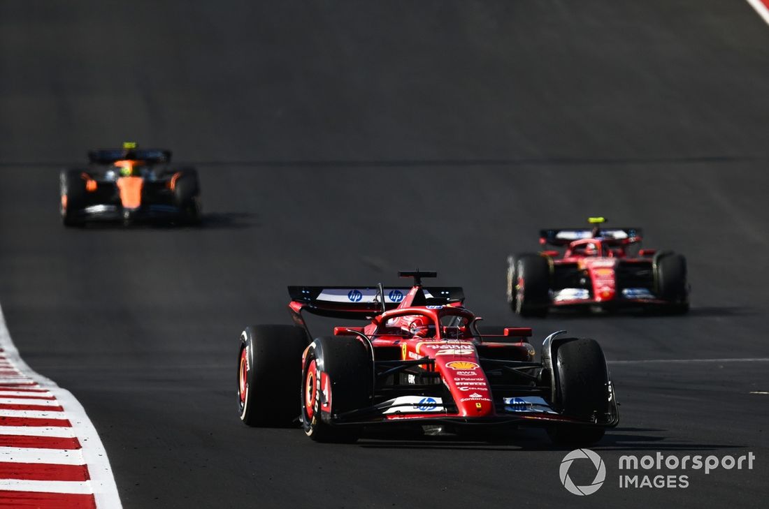 Charles Leclerc, Ferrari SF-24, Max Verstappen, Red Bull Racing RB20, Carlos Sainz, Ferrari SF-24, Lando Norris, McLaren MCL38, o resto do pelotão