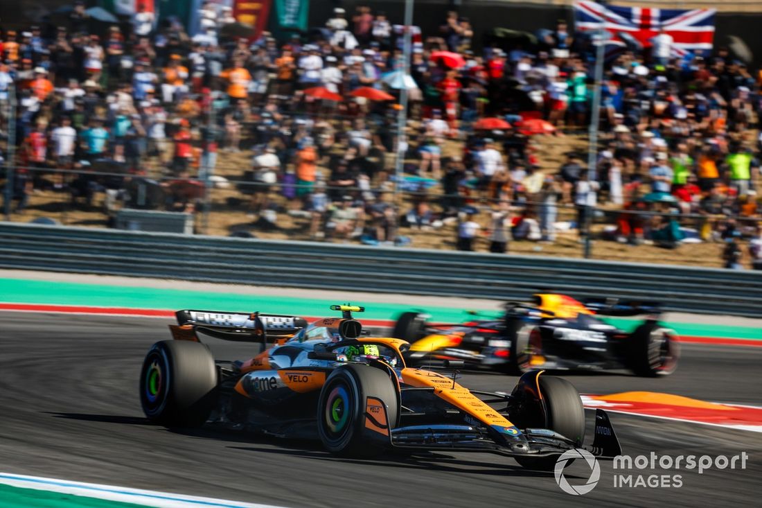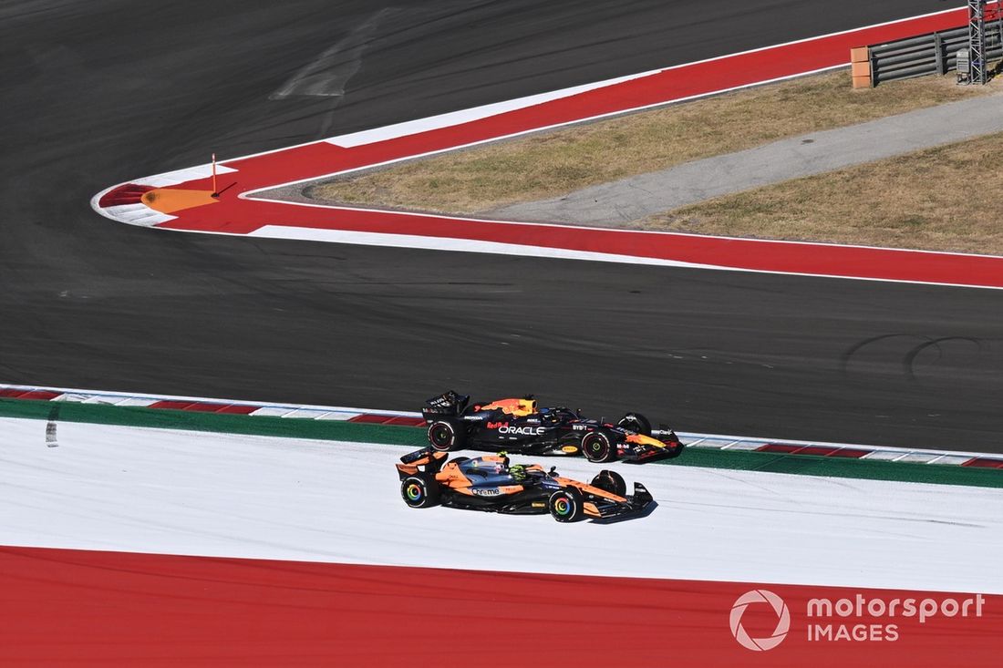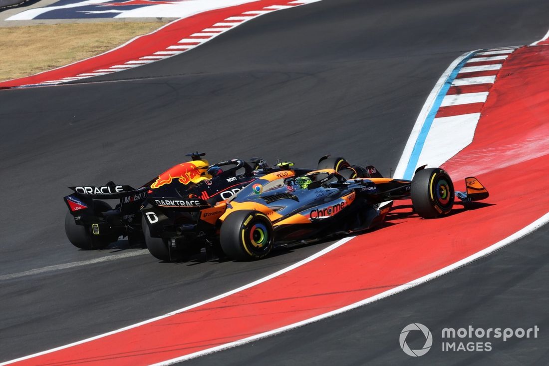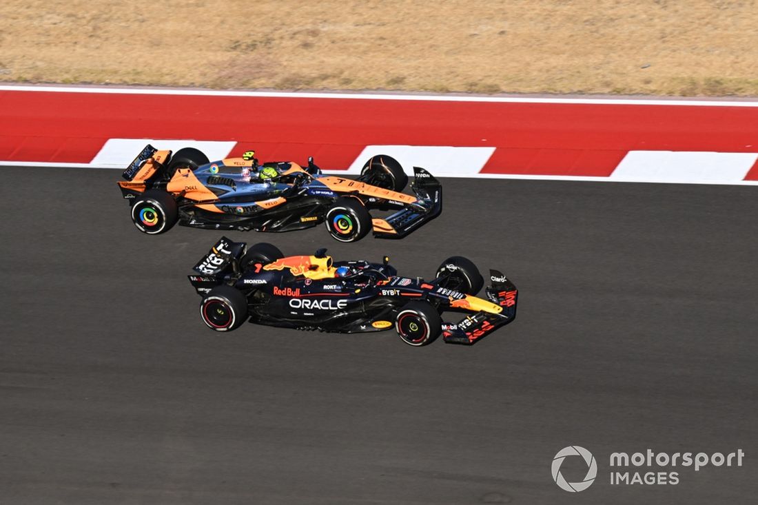 Max Verstappen, Red Bull Racing RB20, luta com Lando Norris, McLaren MCL38