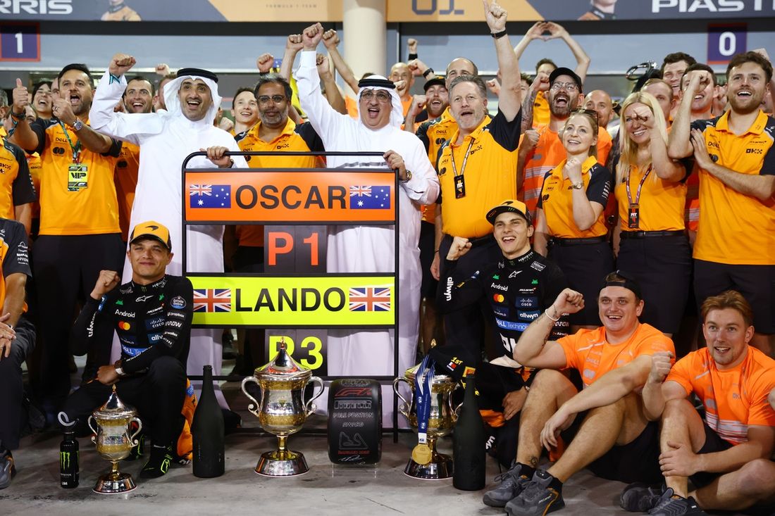 Lando Norris, McLaren, Oscar Piastri, McLaren, George Russell, Mercedes, Andrea Stella, McLaren
