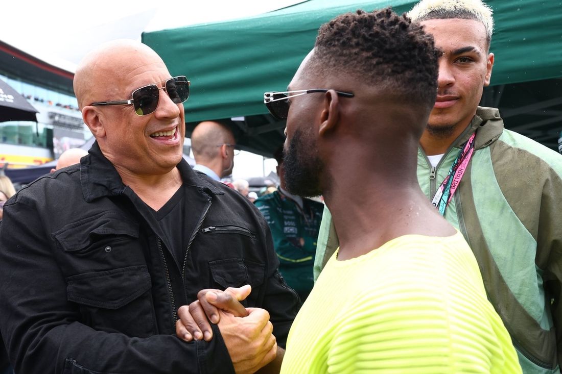 Vin Diesel on the grid prior to the F1 Grand Prix of Great Britain.