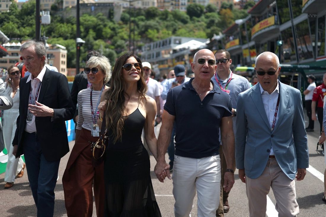 Derek Chang, Chief Executive Officer of Liberty Media Corporation, Jeff Bezos and Lauren Sanchez on the grid