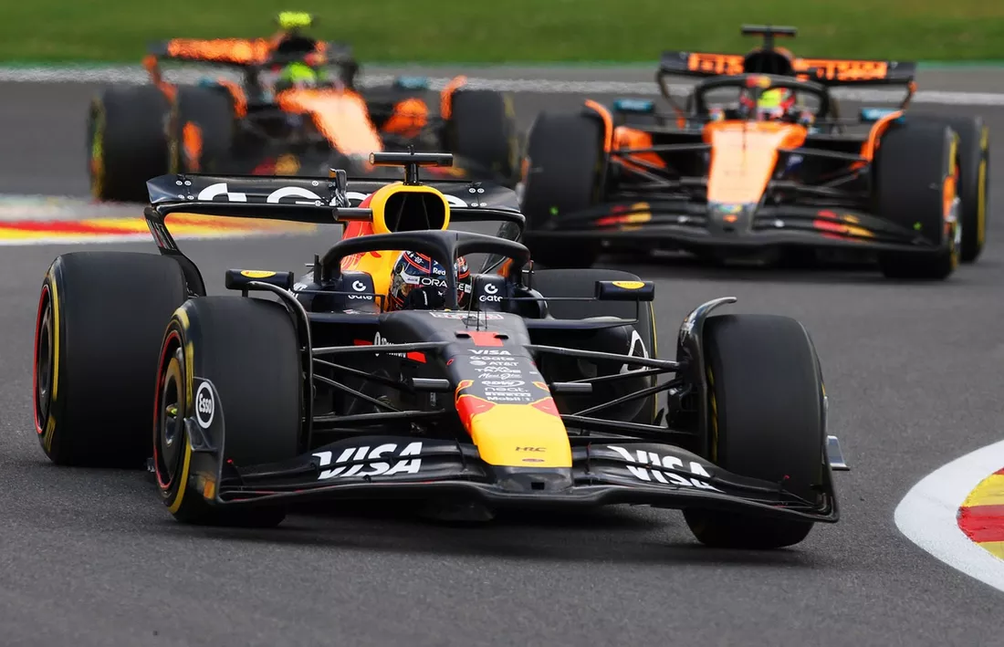 Lando Norris, McLaren, Oscar Piastri, McLaren, Max Verstappen, Red Bull Racing
