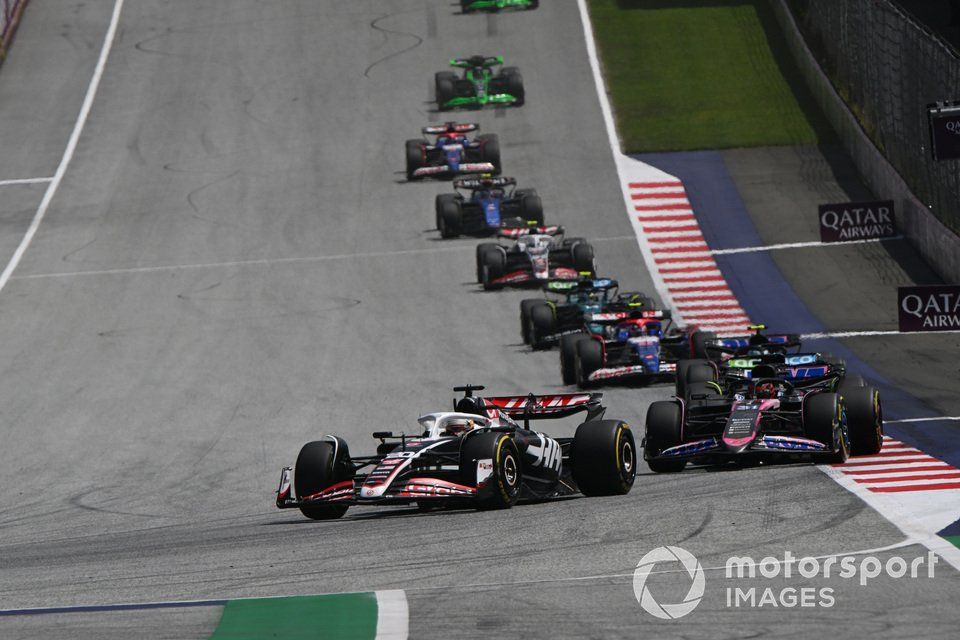 Kevin Magnussen, Haas VF-24, Pierre Gasly, Alpine A524, Lance Stroll, Aston Martin AMR24, o resto do pelotão no início da Sprint