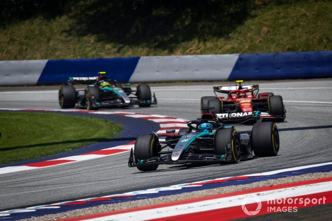 George Russell, Mercedes F1 W15, Carlos Sainz, Ferrari SF-24, Lewis Hamilton, Mercedes F1 W15