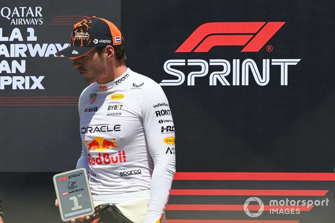 Max Verstappen, da Red Bull Racing, posa com o seu troféu Sprint