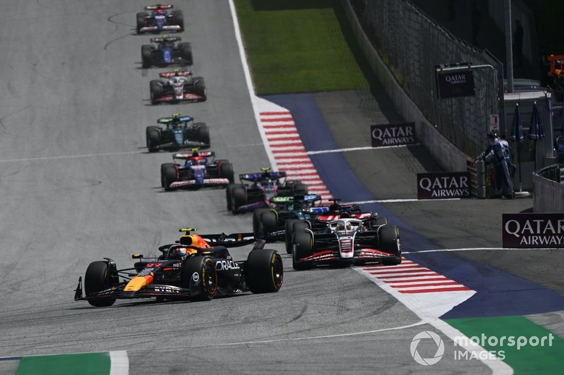 Sergio Perez, Red Bull Racing RB20, Kevin Magnussen, Haas VF-24, Esteban Ocon, Alpine A524