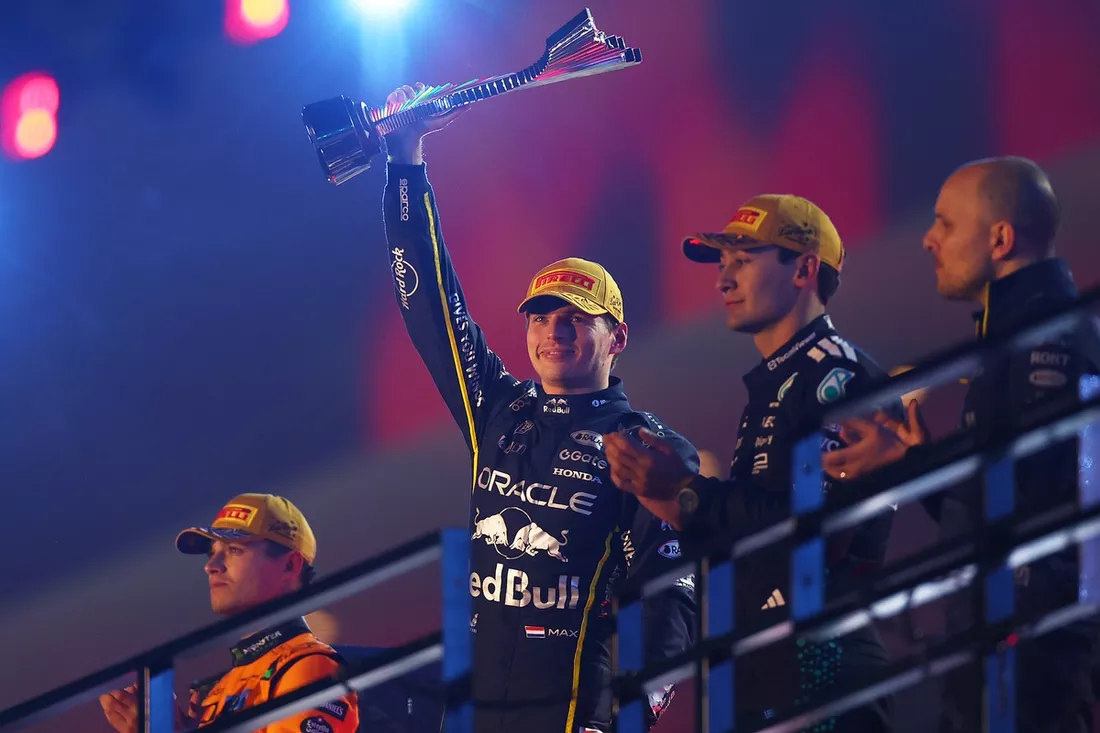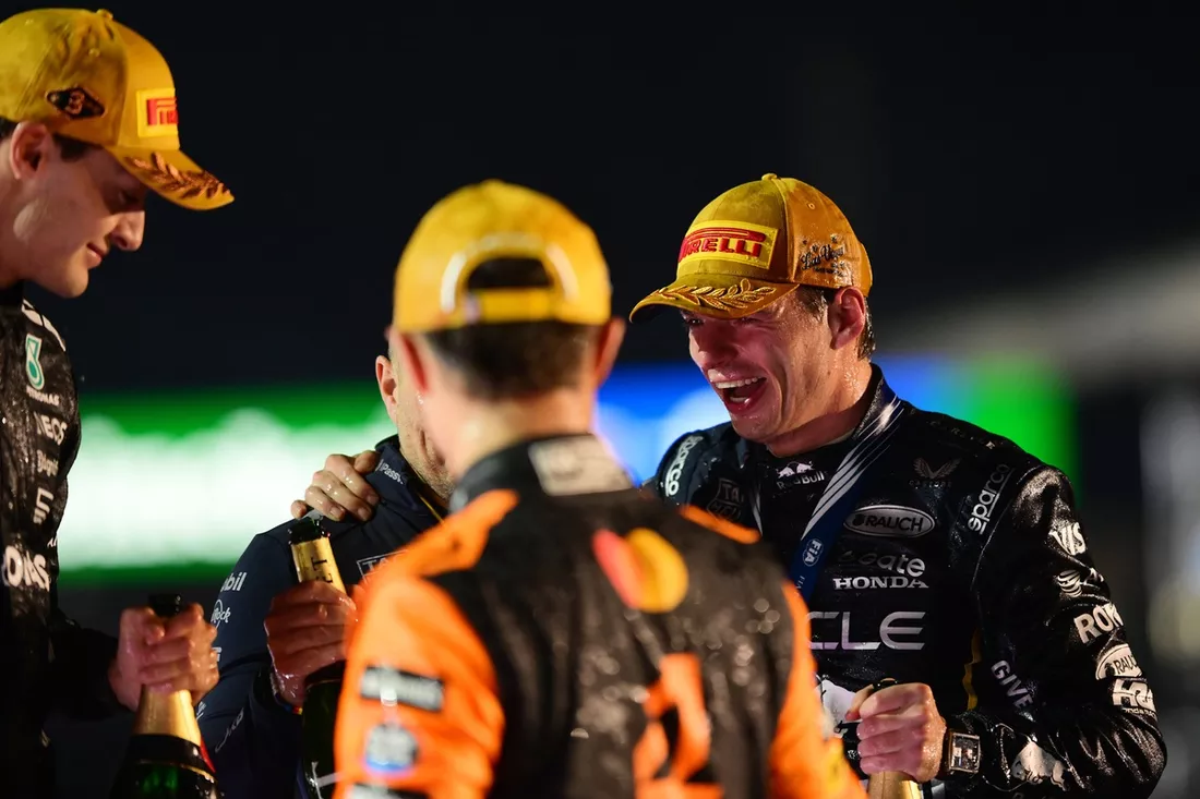 Lando Norris, McLaren, Max Verstappen, Red Bull Racing, George Russell, Mercedes