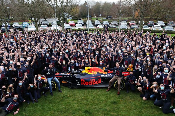 Holandês esteve em Milton Keynes, onde fica a sede da equipe, na última quarta-feira para celebrar seu inédito título da Fórmula 1