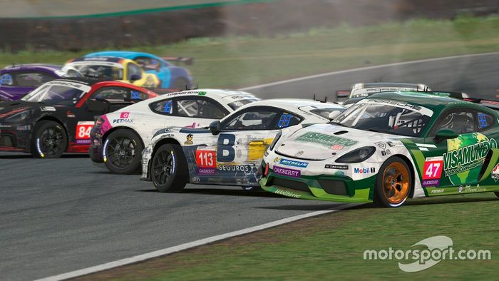 A noite de quarta-feira (1) abriu as disputas do Porsche Esports Sprint Challenge. Correndo com os modelos 718 Cayman GT4 Clubsport de setup fixo, os 40 classificados mostraram que a disputa ao longo das seis etapas vai pegar fogo. O dia começou com Bruno Souza cravando a posição de honra no quali. Mas sua vantagem durou até a primeira curva da primeira largada. Tocado na traseira do carro, viu suas esperanças de vitória escaparem enquanto ele rodava no final da reta.